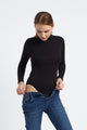 Ce body noir en coton lycra, doté d'un petit col montant et de manches longues, allie confort et élégance tout en vous offrant une chaleur optimale. Sa fermeture à boutons pressions facilite l'enfilage et le retrait, offrant une praticité appréciable au quotidien.